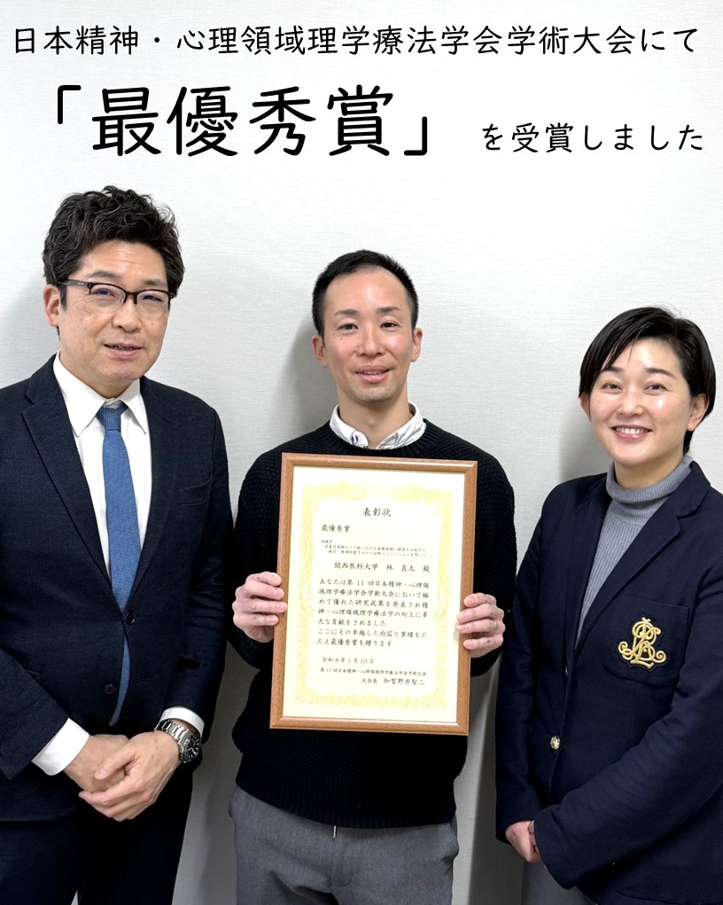 HOME 学部・大学院 リハビリテーション学部 林助教、三木准教授、吉村教授が、第11回日本精神・心理領域理学療法学会学術大会にて「最優秀賞」を受賞しました。 林助教、三木准教授、吉村教授が、第11回日本精神・心理領域理学療法学会学術大会にて「最優秀賞」を受賞しました。 林助教、三木准教授、吉村教授が、第11回日本精神・心理領域理学療法学会学術大会にて「最優秀賞」を受賞しました。 SHARE シェア Tweet