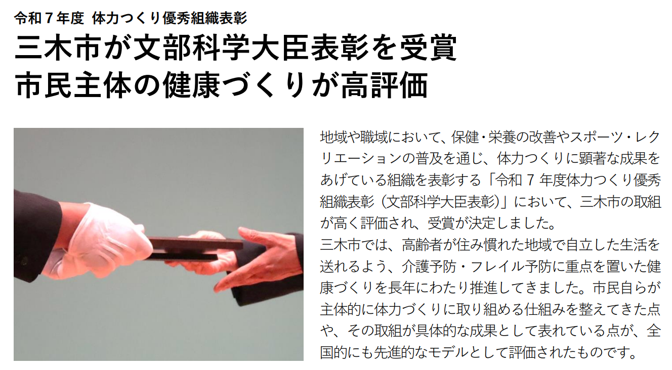 浅井准教授が専門的知見を提供してきた三木市の介護予防事業が文部科学大臣賞を受賞しました