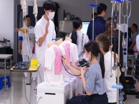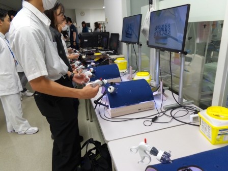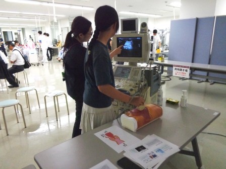 医学生に必要な医療行為全般の体験が可能な施設で、100種類を超える機器の中から、教員・学生スタッフが各日4つのブースでそれぞれの機器について説明し、参加者に実際に体験してもらいました。