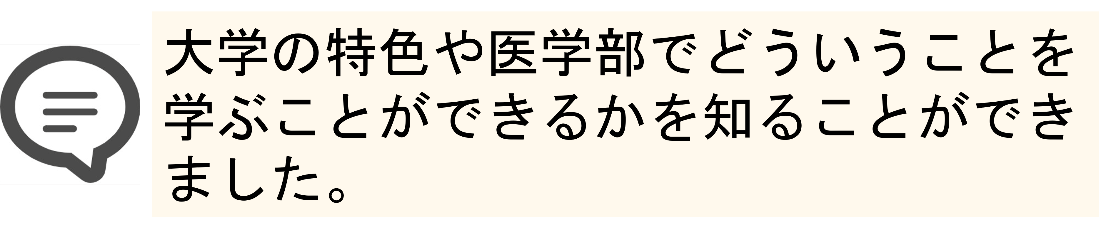 医学部在学生が、受験勉強・学生生活や実習などについて自身の体験を包み隠さず話しました。