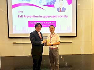 学会内ではFall Prevention in super-aged societyというタイトルで招待講演も実施し、高齢化に伴う転倒予防方策について講演会を行いました。