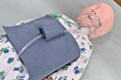 大型のマジックテープで装着する腹巻き型のベルトとなっている本製品は、既存の酸素供給マスクを乳幼児の腹部に装着することができ、その胸元に固定されたマスクから顔面に向けて酸素が吹き出します。そのことにより、マスクを密着させなくても顔の周りの酸素濃度は上がり、確実な体内への酸素供給を可能としました。これにより、保護者は泣きわめく乳幼児をなだめる負担が減り、医療従事者もこまめに酸素供給状況を確認する必要がなくなるなど、様々な面でメリットが期待されています。